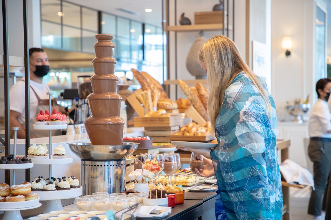 This is a buffet with a difference where dishes include a special roast carving section with beef Wellington, dill-crusted roast salmon, and roasted chicken served with condiments just to name a few.