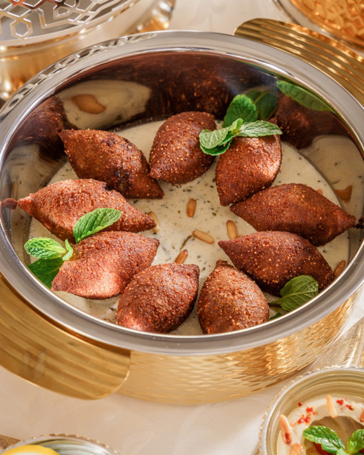 The award-winning tent is an opulent dining destination featuring stunning Arabesque-inspired décor, lavish Iftar and Ghabga experiences, and live music. ]