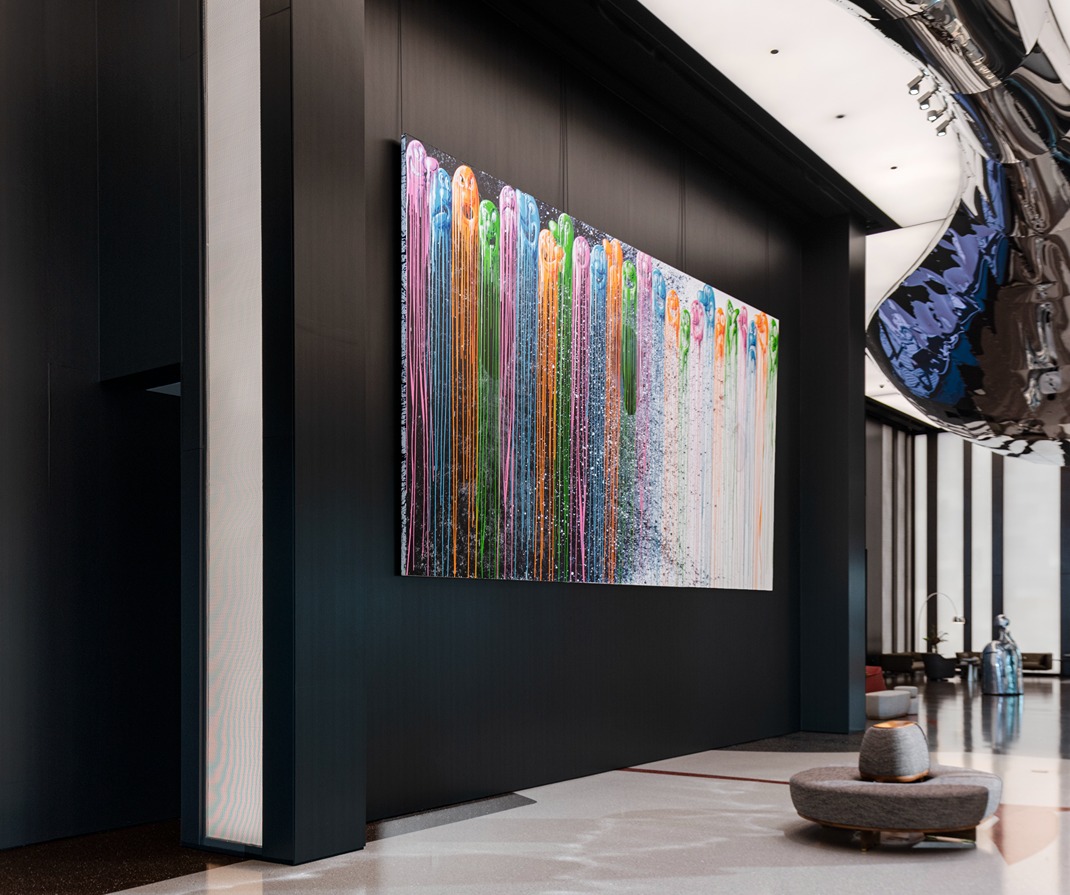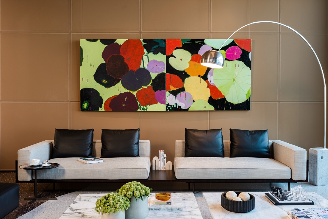 Travelers can explore Scharf’s seven-meter painting, We’re Melting Together Night and Day, and Marienfeld’s striking sculpture Blow Up. Derakshani’s serene floral paintings enhance the private lounges, while Valdés’ Reina Mariana greets guests with its elegant shimmer.