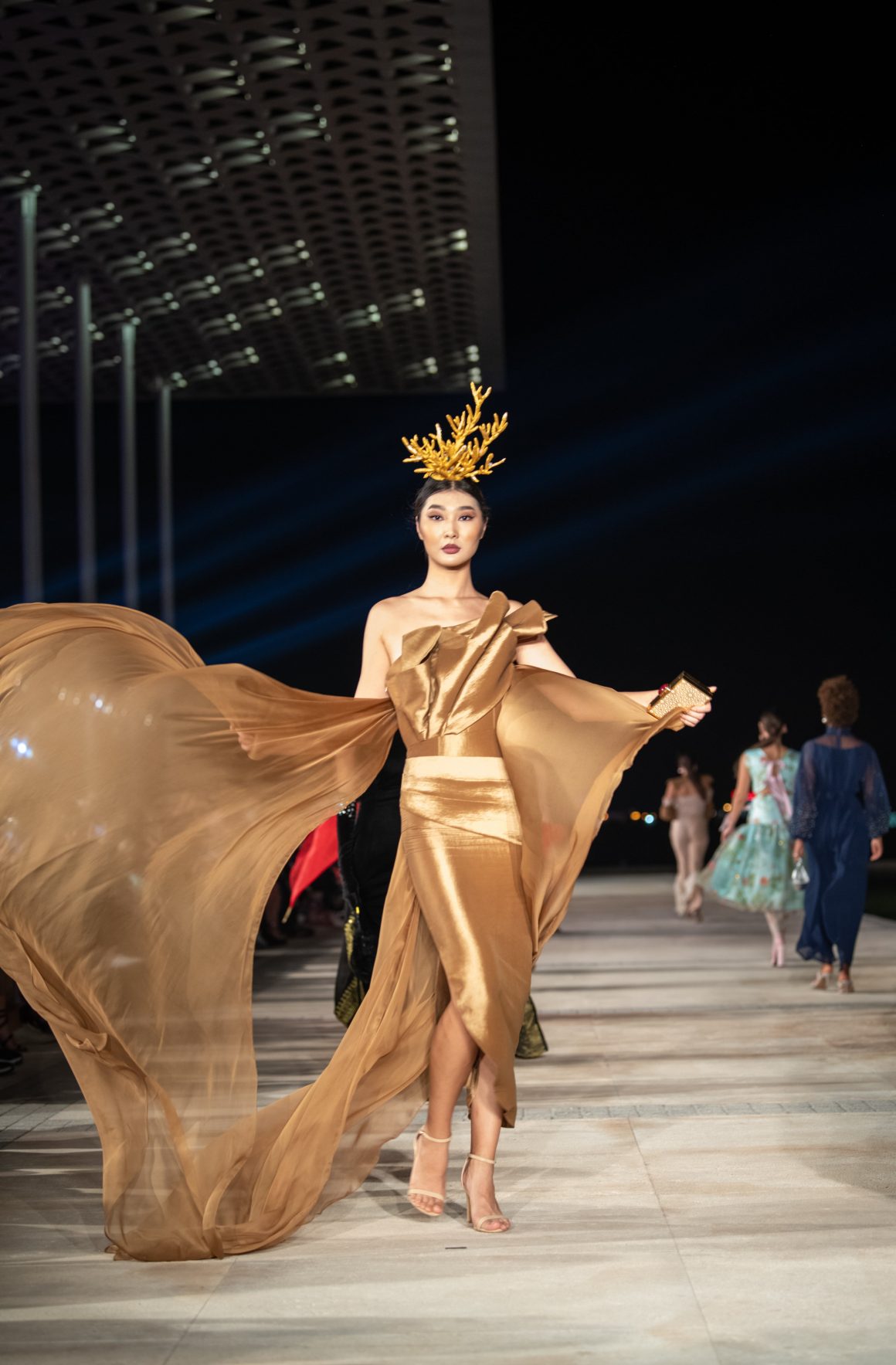 The fashion show took place on the picturesque waterfront of the National Theatre of Bahrain with a dozen emerging designers displaying their collections. A jury of Bahraini and French experts voted to give the winners an opportunity to develop their fashion skills in France in 2023.