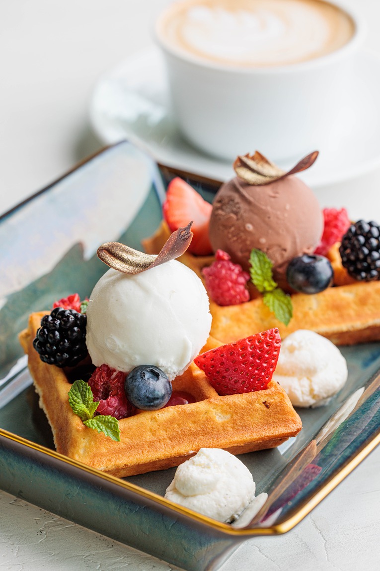 Or, create your own perfect combination with your favorite ice cream and freshly made Belgian waffles