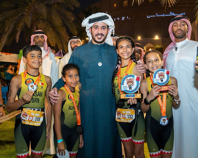 On this occasion, His Highness Shaikh Khalid bin Hamad Al Khalifa expressed his great happiness with the wide participation of children in the triathlon race, emphasizing the importance of such events in encouraging children to adopt sports as a healthy lifestyle.