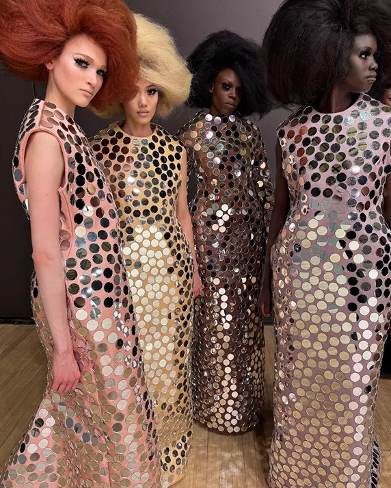 This collection was a reflection of Jacobs’ ongoing evolution and curiosity. Known for reinventing himself and his brand over the years, Jacobs currently embraces a glitzy maximalism, as evidenced by his affinity for extravagant details like extra-long nails adorned with Swarovski crystals. His runway show was a statement of creative and cultural relevance, showcasing why he remains a leading figure in the fashion industry.
