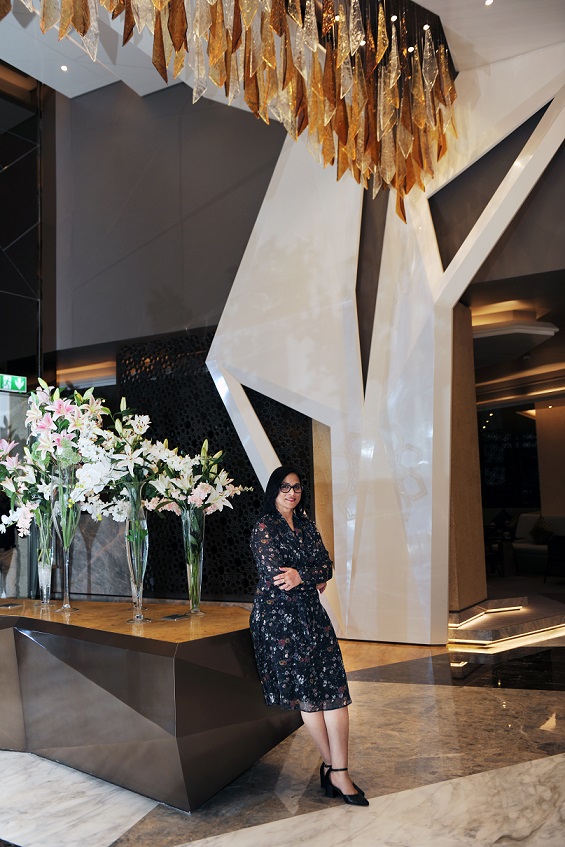 The rich cultural heritage of Bahrain is reflected in the aesthetically placed accessories reflecting elements of black gold & aquamarine for the surrounding seas and rich hues of pearls and gold give a classy luxurious edge to the décor. Local art consultant Rasha Al Mannai developed vibrant art pieces that complemented the bold architectural design features. The artwork of the hotel was inspired by Bahraini gold, characterised by its intricate craftsmanship and the Bahraini natural pearls.
