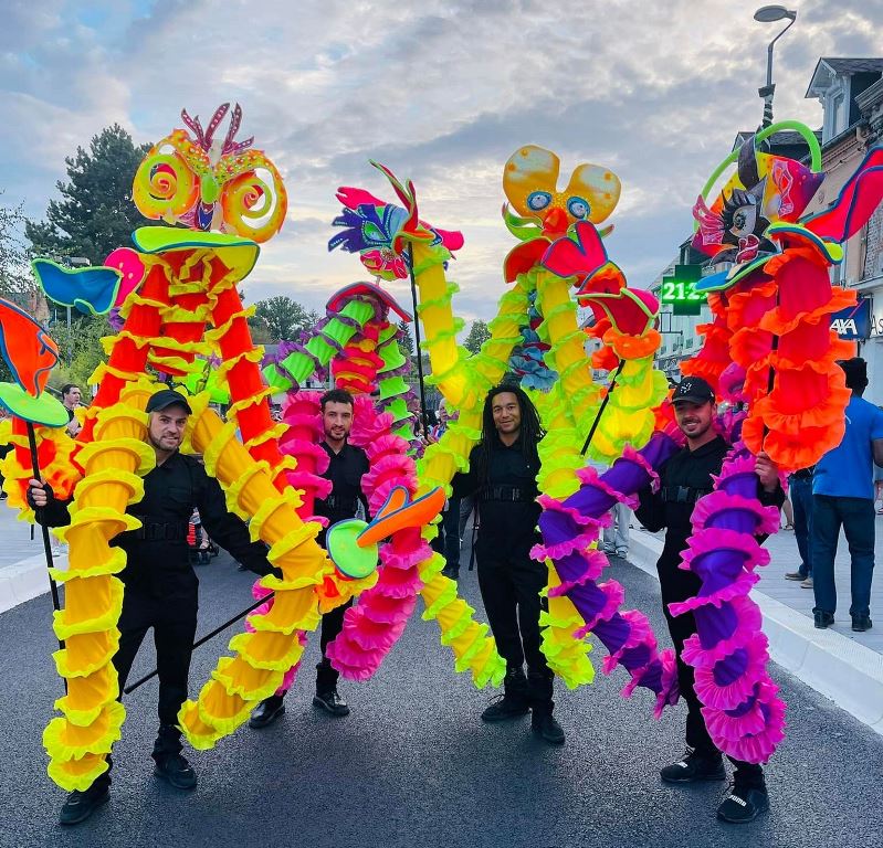 Among the roaming entertainers are the Puglia Street Band, Carnival de Colores, AJ Batucada, TikTak Marionettes, Stevie Wheels and Juggling Dom.