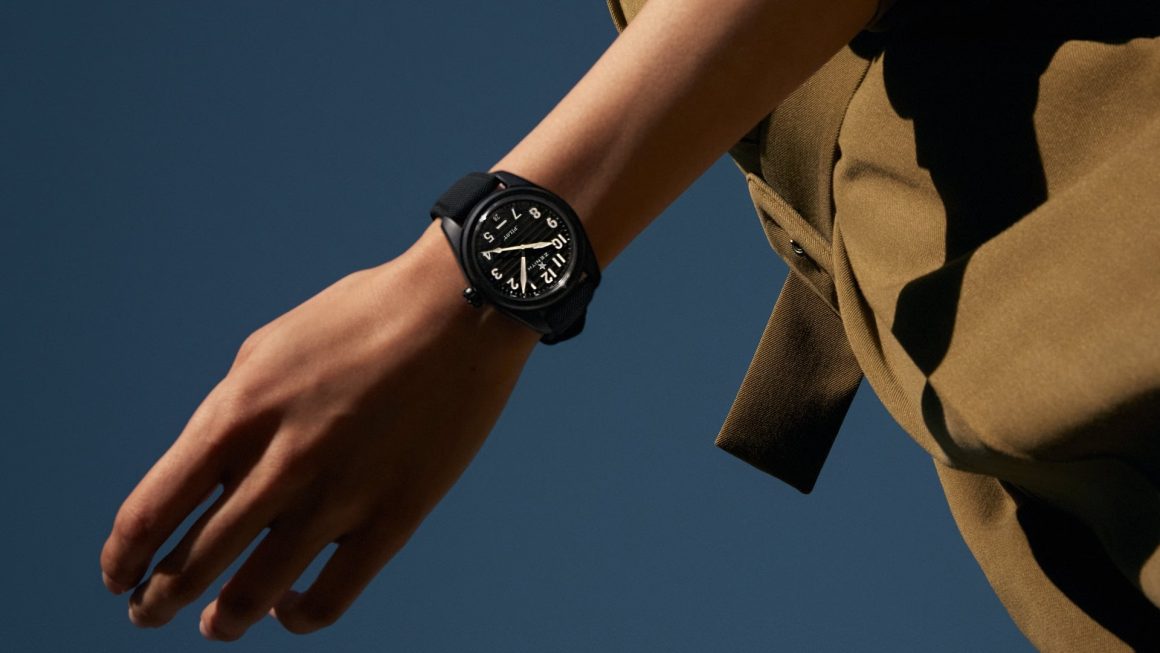 Two replaceable straps are included with the Zenith Pilot automatic: a black and khaki Cordura strap for the ceramic version and a black Cordura and brown calfskin leather strap for the steel version. Without using a tool, the convenient quick-release mechanism enables you to quickly change your watch’s strap and personality.