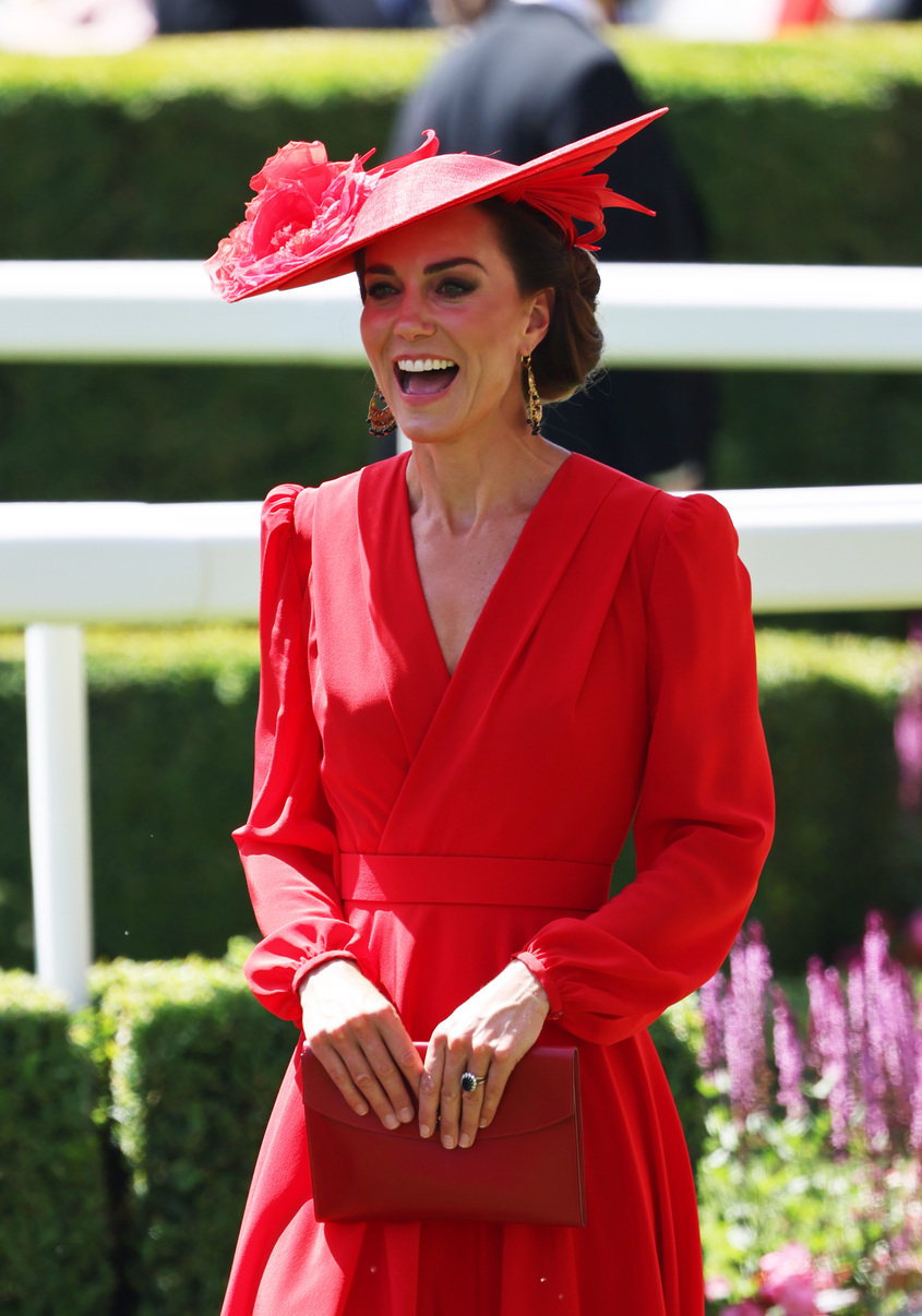This year more than ever, tradition was eschewed in favour of a contemporary take on occasionwear and setting the sartorial tone was the Princess of Wales, Kate Middleton who was a strong leader in the colour stakes, courtesy of Alexander McQueen and Phillip Treacy. Her all-red look felt like a cool, bold choice in a sea of pastels, and was possibly a special nod to the same scarlet look that Princess Diana wore to the event 30 years previously.